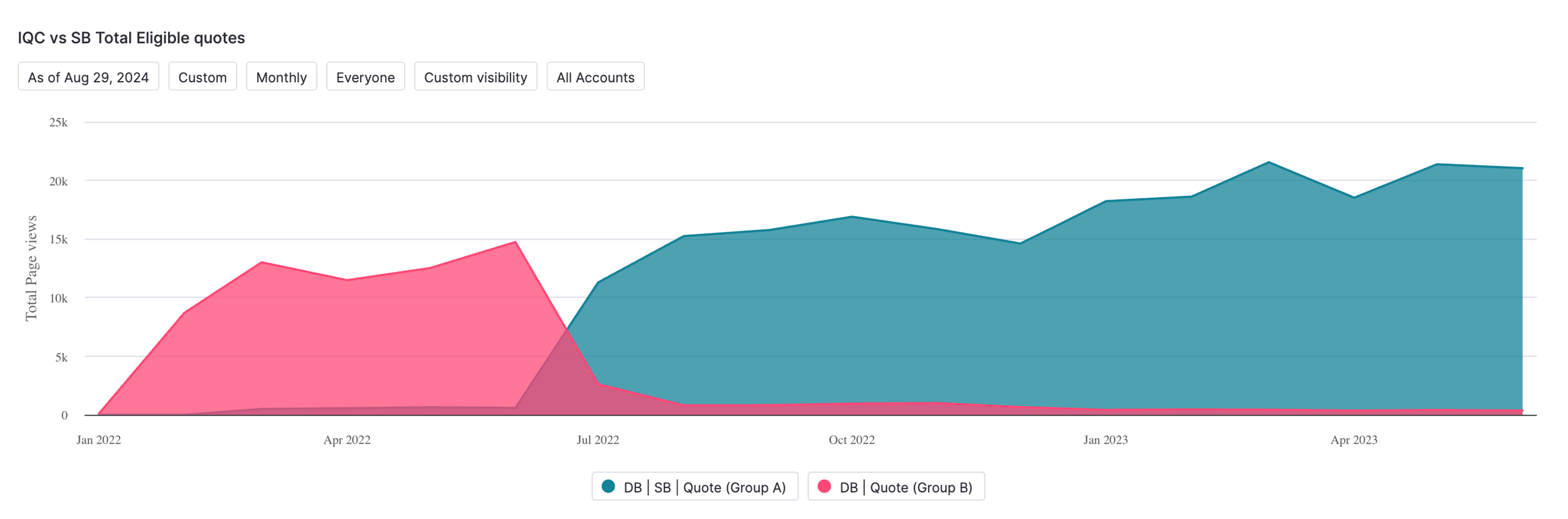 Over the next year, we saw a steady increase in total eligible quotes doe to both an increase in usage and overall better risk selection* via the implemented automated underwriting.