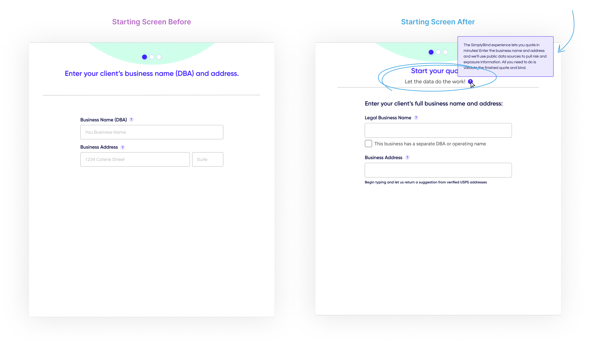 After a few cycles of iteration and feedback with stakeholders on these design improvements, Coterie fully launched the new SimplyBind experience in July 2022.